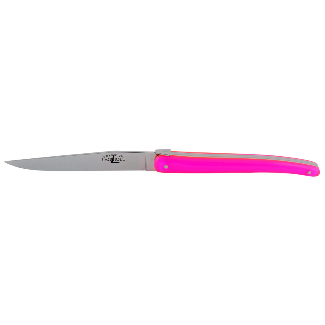 Coffret de 2 ou 6 couteaux Fluo de table Laguiole plein manche en Dacryl® (matière française) qui satisfait aux critères qualitatifs les plus stricts. Design Jean-Michel Wilmotte