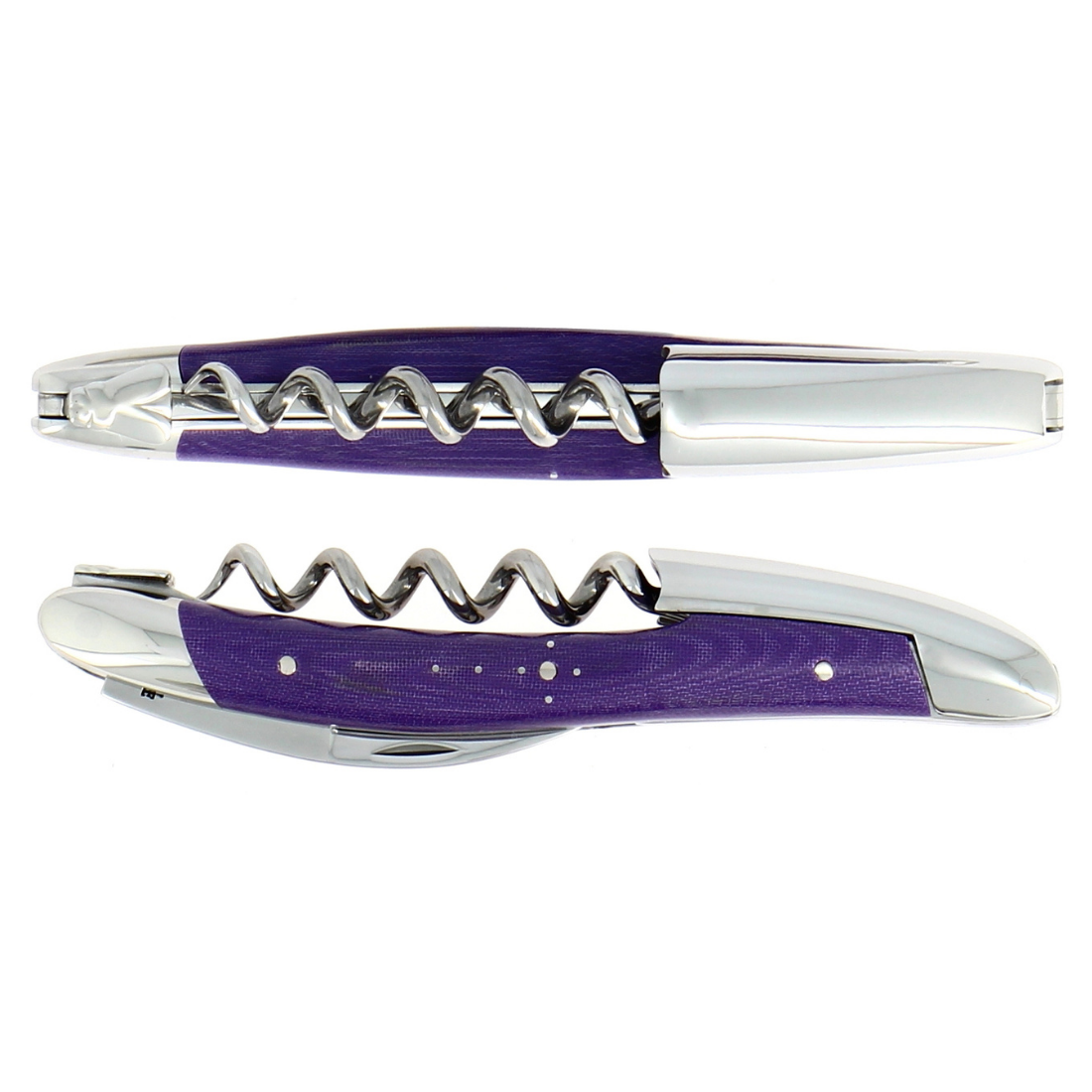 Ces tire-bouchons de La Forge Laguiole sont le mariage de l'élégance traditionnelle du couteau de Laguiole et de la modernité haute en couleur du tissu compressé.