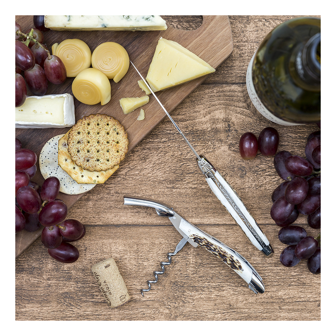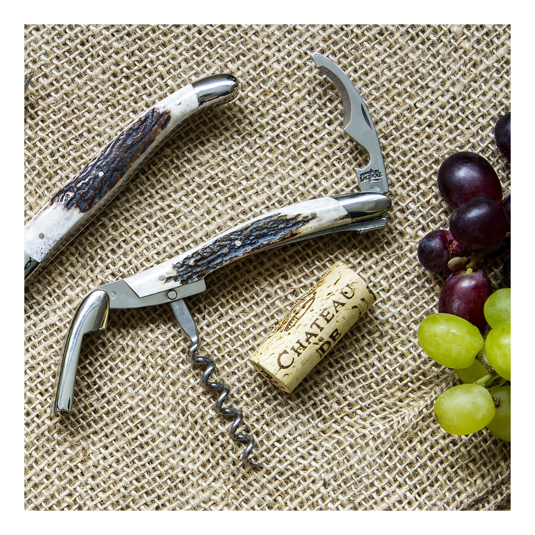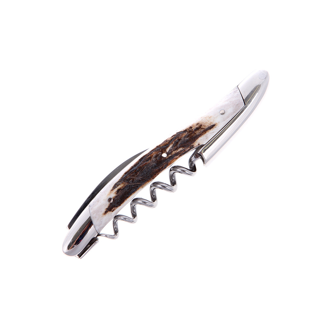 Ce tire-bouchon de sommelier Laguiole est en bois de cerf, finition satinée ou brillante.